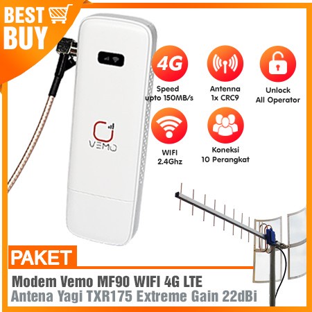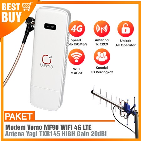 Paket Antena Modem Wifi Mifi Vemo MF90 & Antena 4G LTE Lengkap Kabel