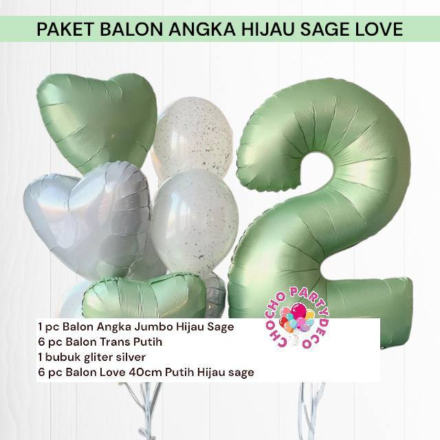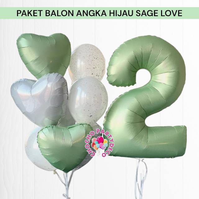 Paket Balon Angka Hijau Sage Love / Dekorasi Ulang Tahun Angka Jumbo