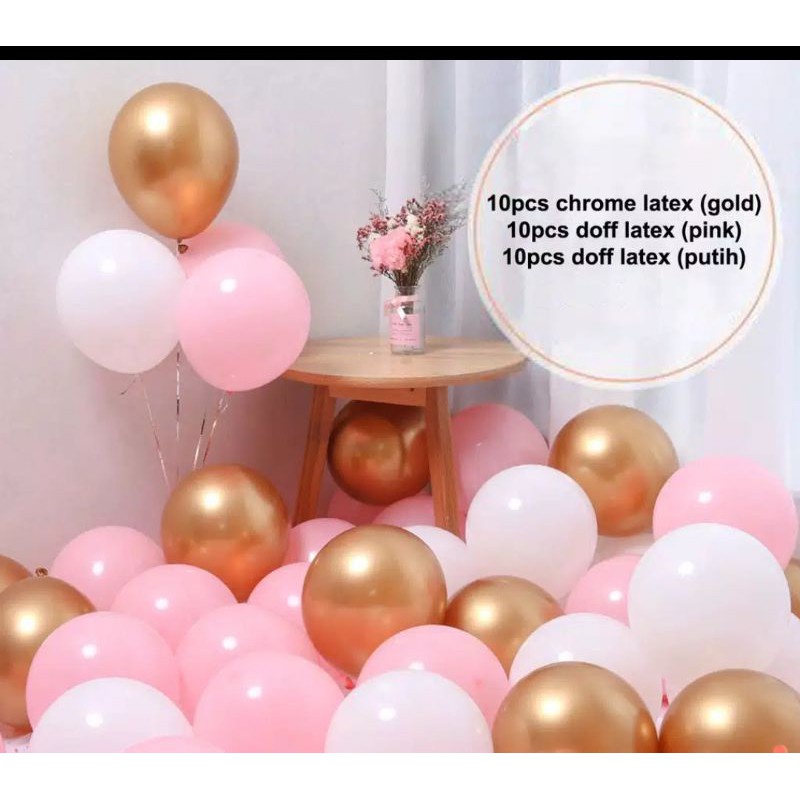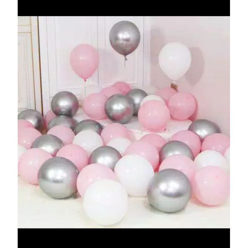 Paket Balon Latex 12inch /Kombinasi Balon Chrome Doff isi 30