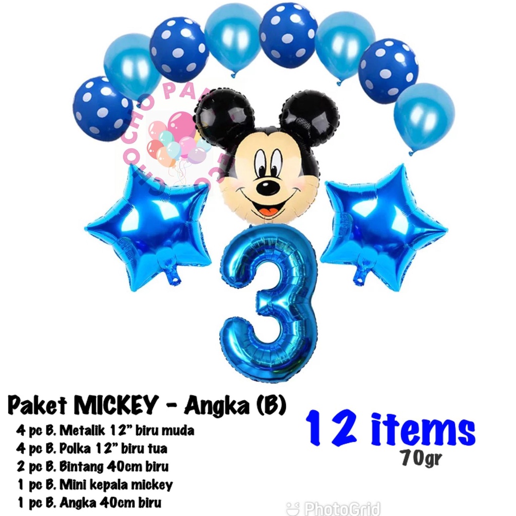 Paket Balon MICKEY MOUSE Angka B / Dekorasi Ulang Tahun Mickey Mouse