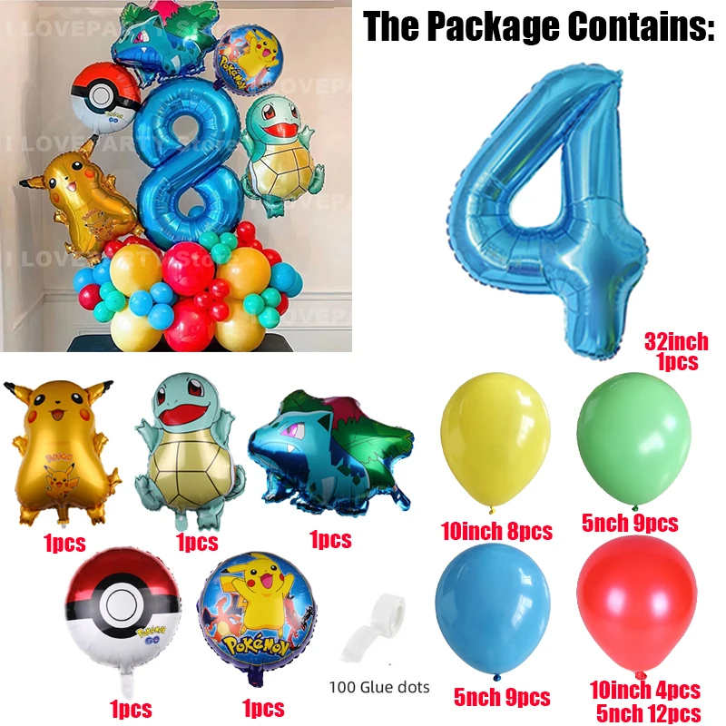 Paket Balon Pokemon Angka Biru Dekorasi Stand
