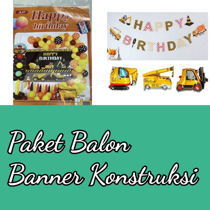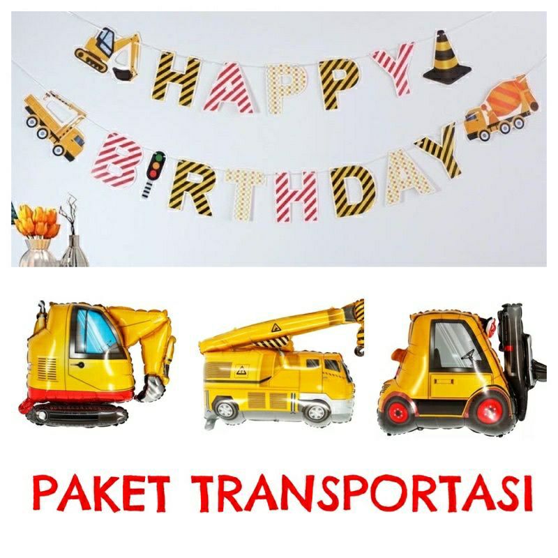 Paket Balon Transportasi Cars Banner Alat Berat Konstruksi Happy Birthday