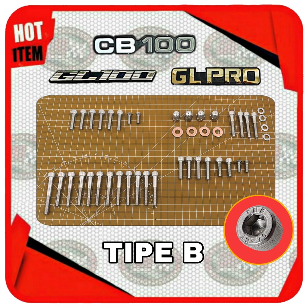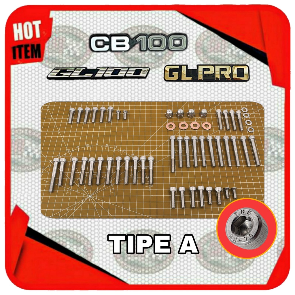 Paket Baut L STAINLESS Mesin Honda CB CB100 GL GL100 GL PRO GLPRO CDI SERIES BLACK ENGINE