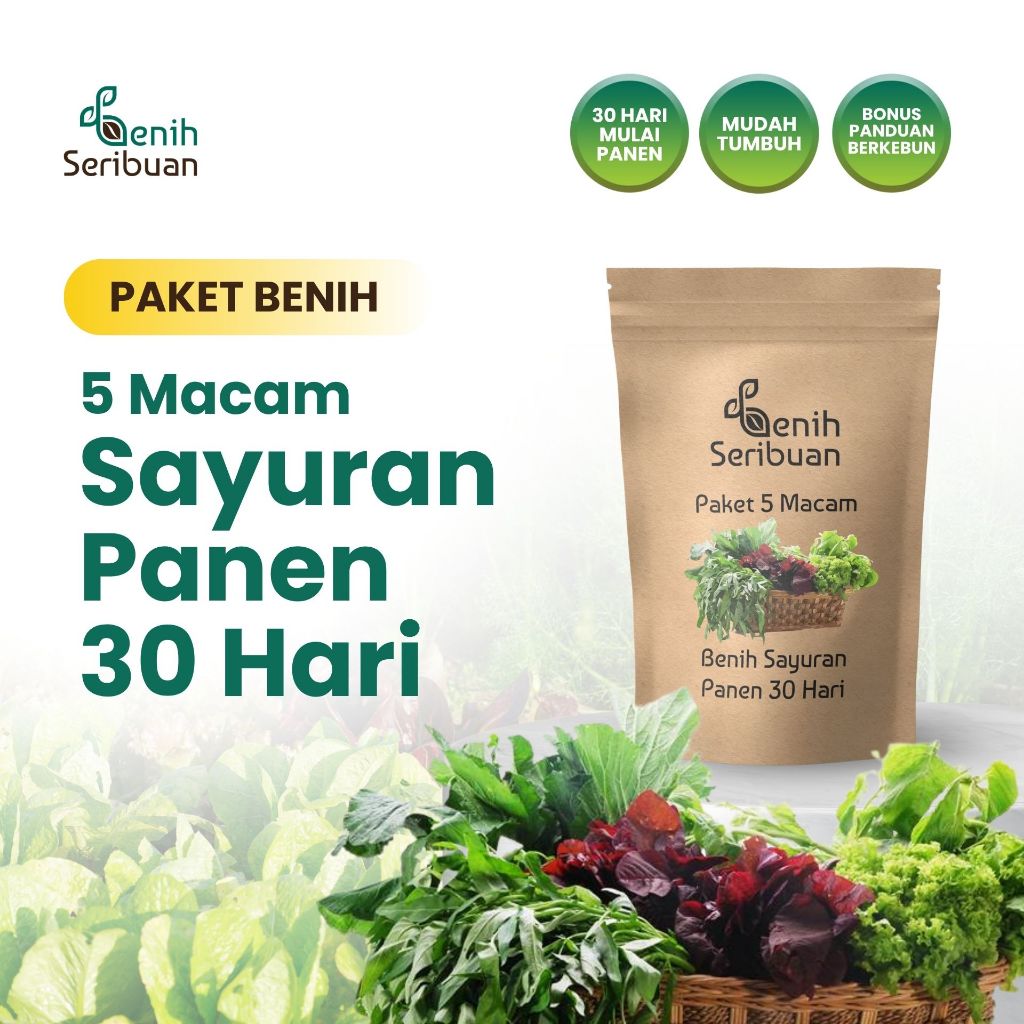 Paket 5 Macam Benih Sayuran 30 Hari Panen Benih sayur benih bayam benih kangkung benih sawi - Benih Seribuan