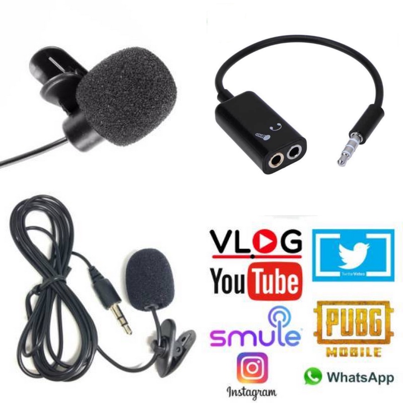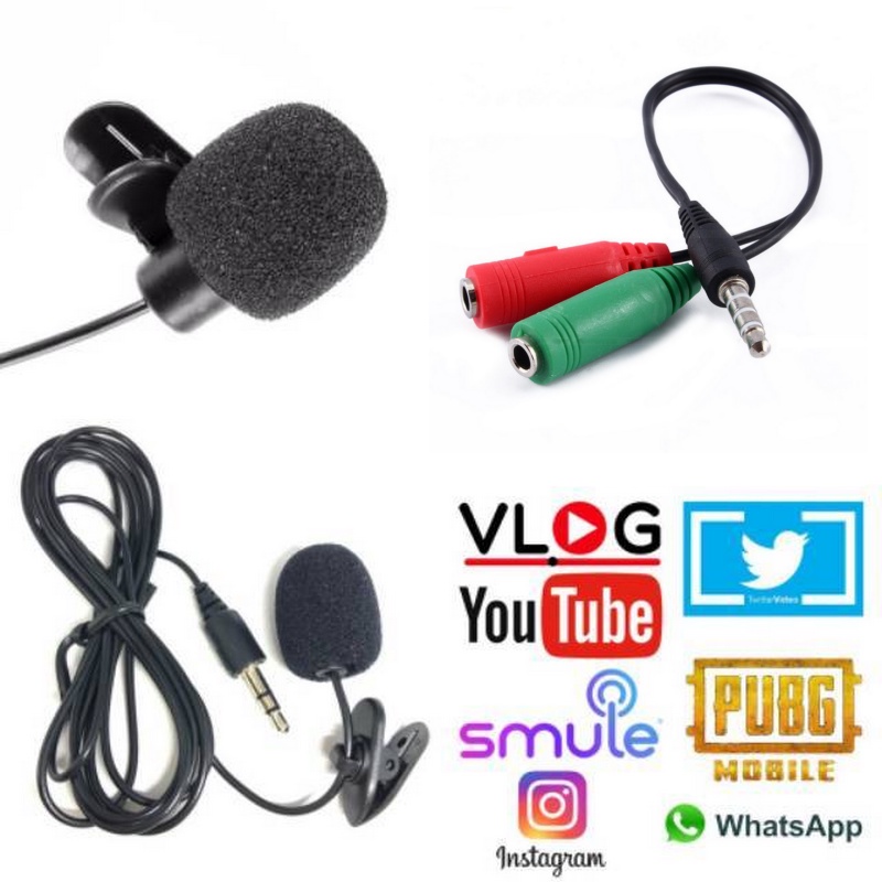 Paket Bundling Microphone Mic Clip On Jepit & Splitter Audio U Shape