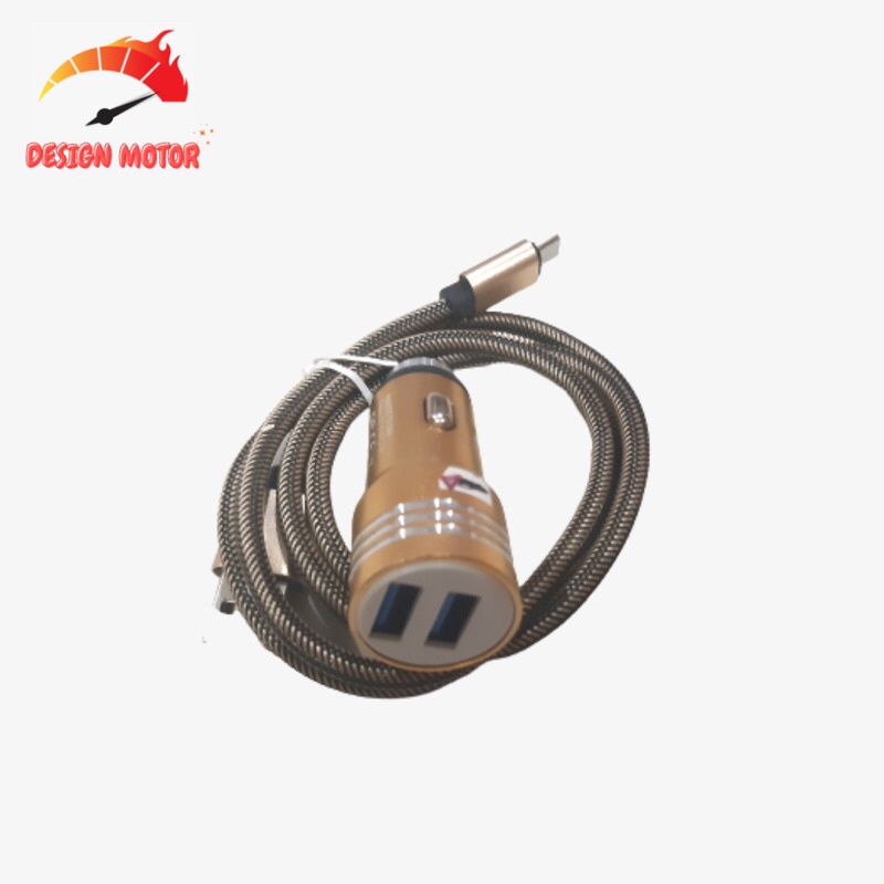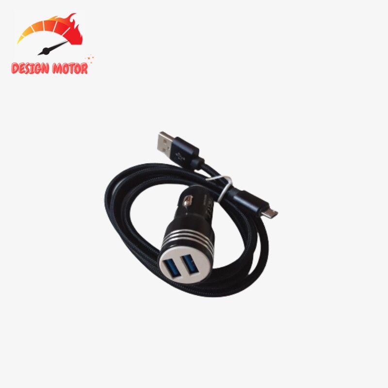 Paket Car Charger Colokan Mobil 2 Ports dan Kabel Data Fast Charger / Paket Kepala atau Batok Charger Mobil dan Kabel Data Fast Charging