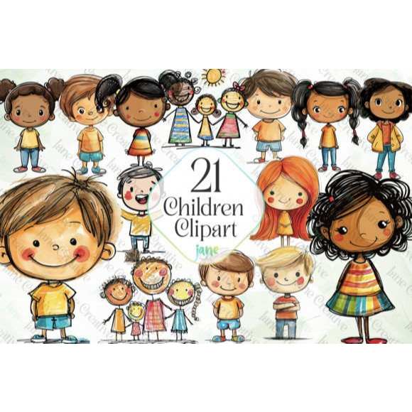 Paket Clipart Anak-anak yang digambar tangan (21 PNG)