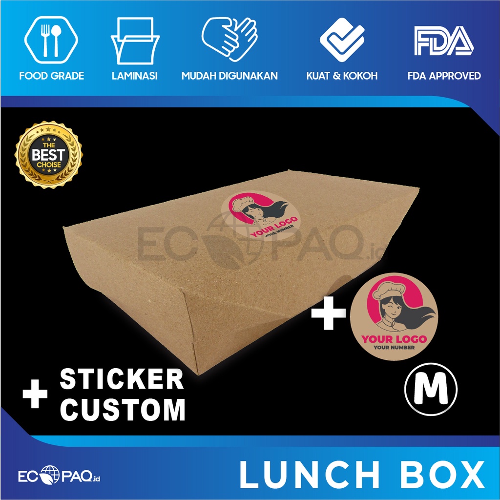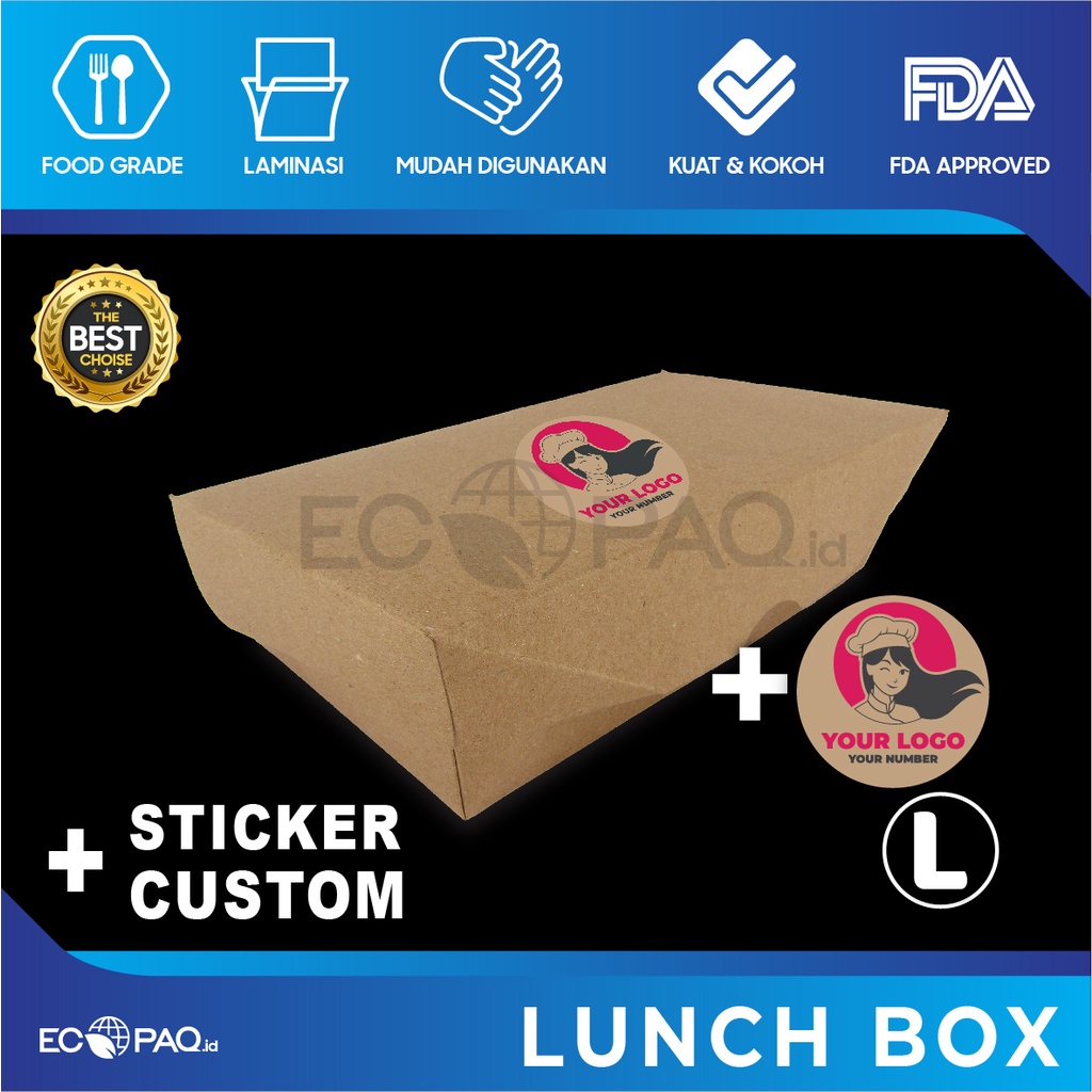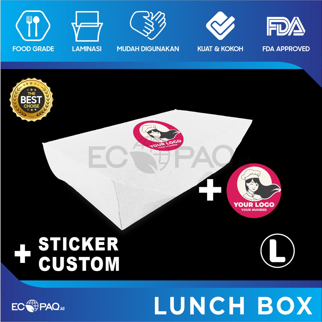Paket Combo LUNCH BOX PAPER + Stiker Logo Custom (50 Set)