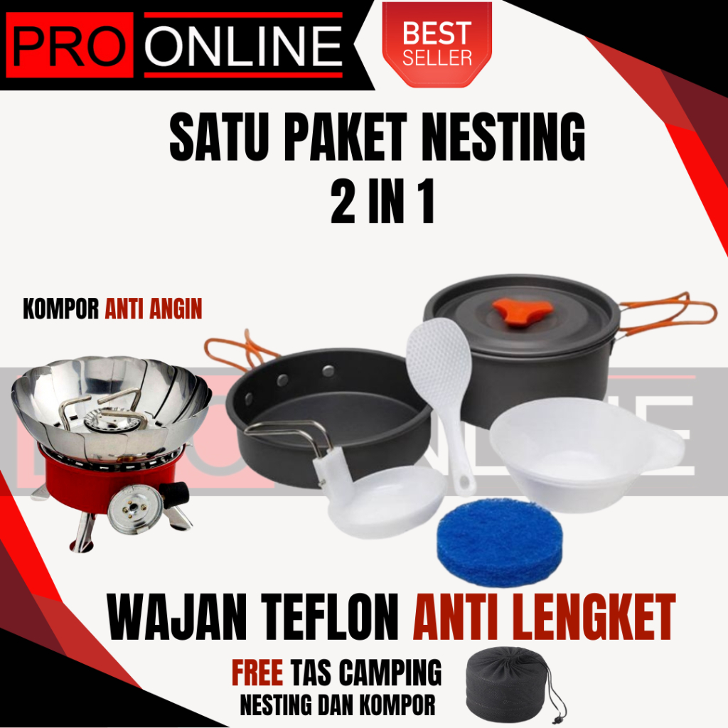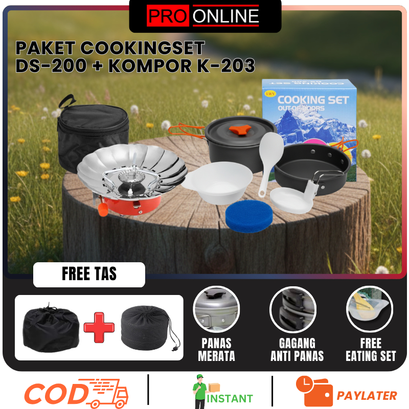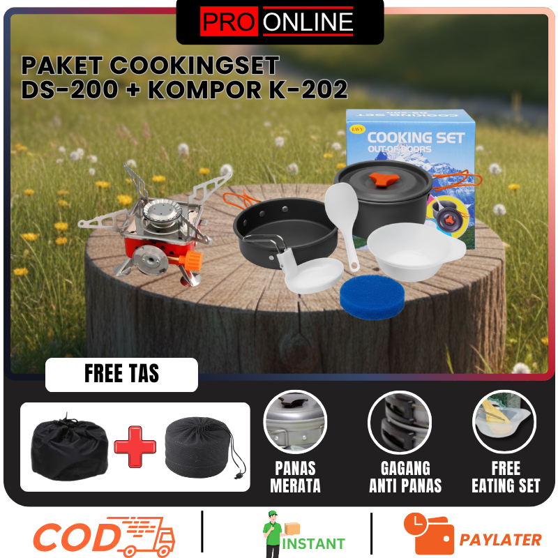 Paket Cooking set 2-3 Orang + Kompor Portable Dan Windproof - Mawar Atau Kotak - Alat Masak 2 Susun