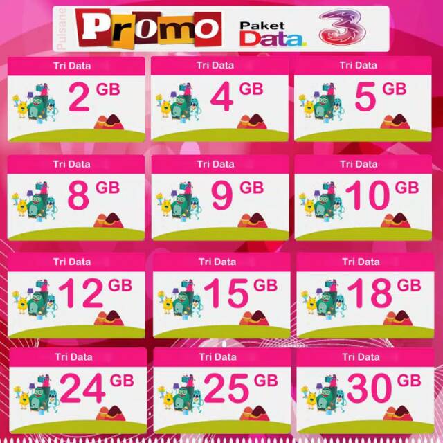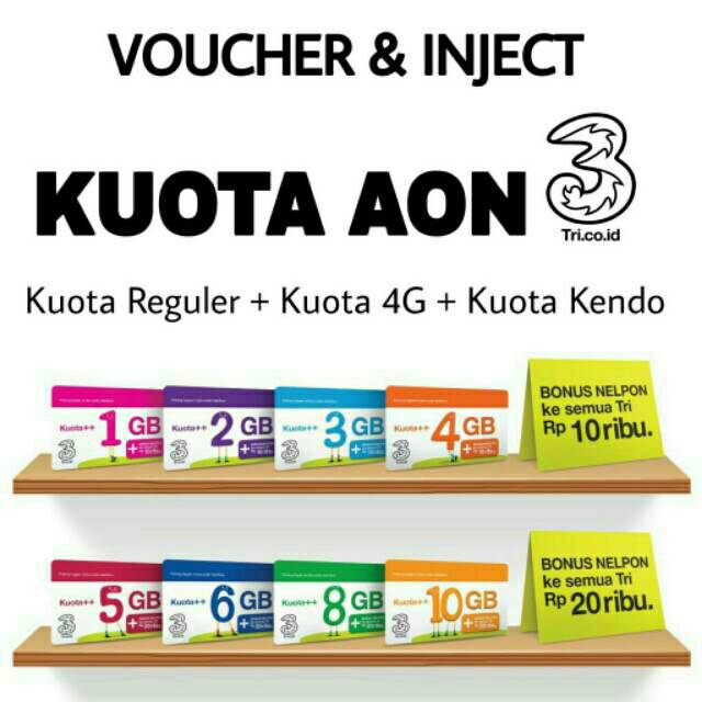 Paket Data Tri Kuota Internet Tri / 3 / Three 4G LTE KUOTA CINTA 5GB 33GB 66GB AON GETMORE AMI KENDO