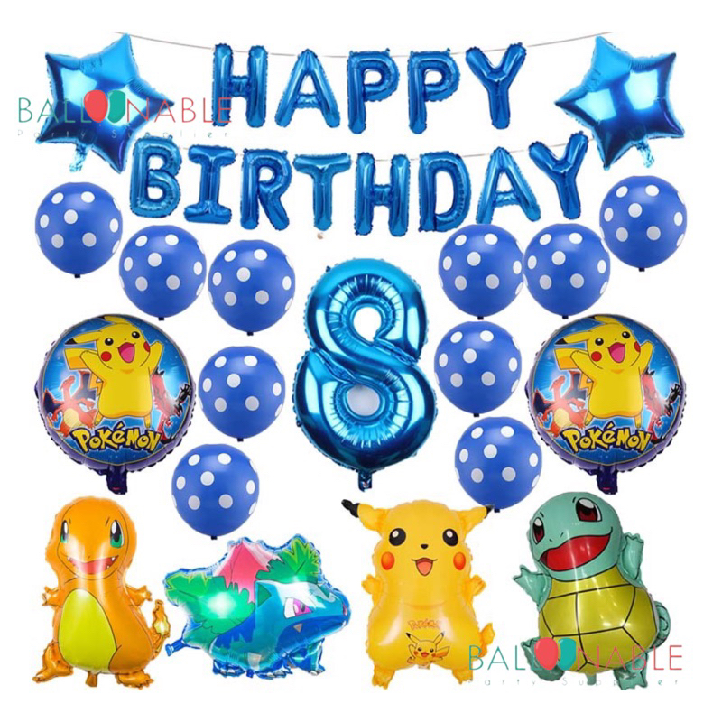Paket Dekorasi Balon Angka Tema Pokemon Simple (PD189)