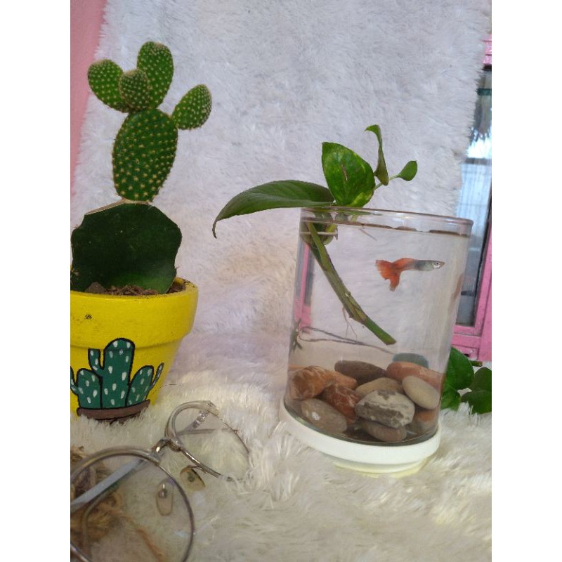 Paket Fullset aquarium mini ikan Cupang / ikan cupang / Aquascape ukuran 12 cm