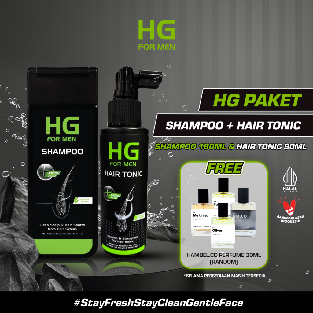 Paket HG Shampoo 180 ml & Hair Tonic For Men 90 ml - Paket Perawatan Rambut Rontok Pria