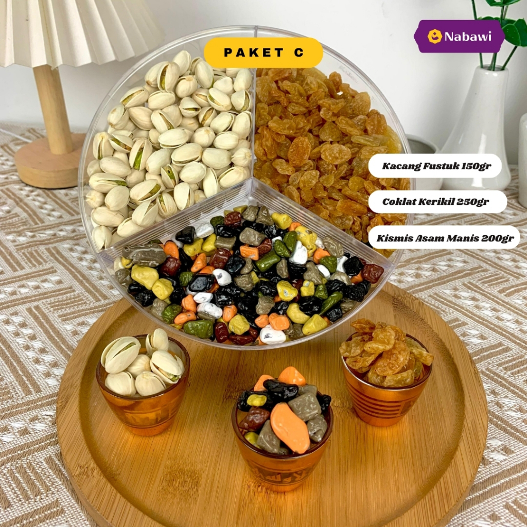 Paket Hampers Makanan 3 Sekat Oleh Oleh Haji dan Umroh Premium Makanan Khas Arab Kacang Arab Pistachio Kismis Almond Coklat Kerikil