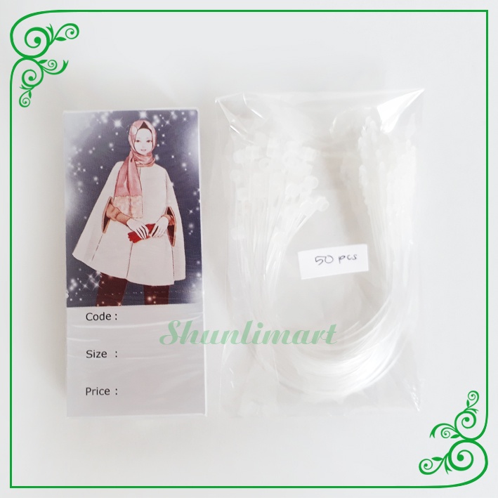 Paket Hang Tag Baju Hijab + Loop Pin / Label Harga Pakaian Muslim + String Pin / Price Tag Fashion