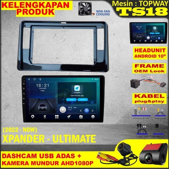 Paket Headunit Android 10 inch + Frame + Soket PNP Mitsubishi Xpander Ultimate Topway TS18 UIS8581A-Octacore 1.6 GHz-RAM 2GB-DSP AKM AK7604VQ-SIM Card 4G-IPS QLED-FAN-Android Auto-Carplay-Split Screen-Double Din Kartu GSM terjangkau