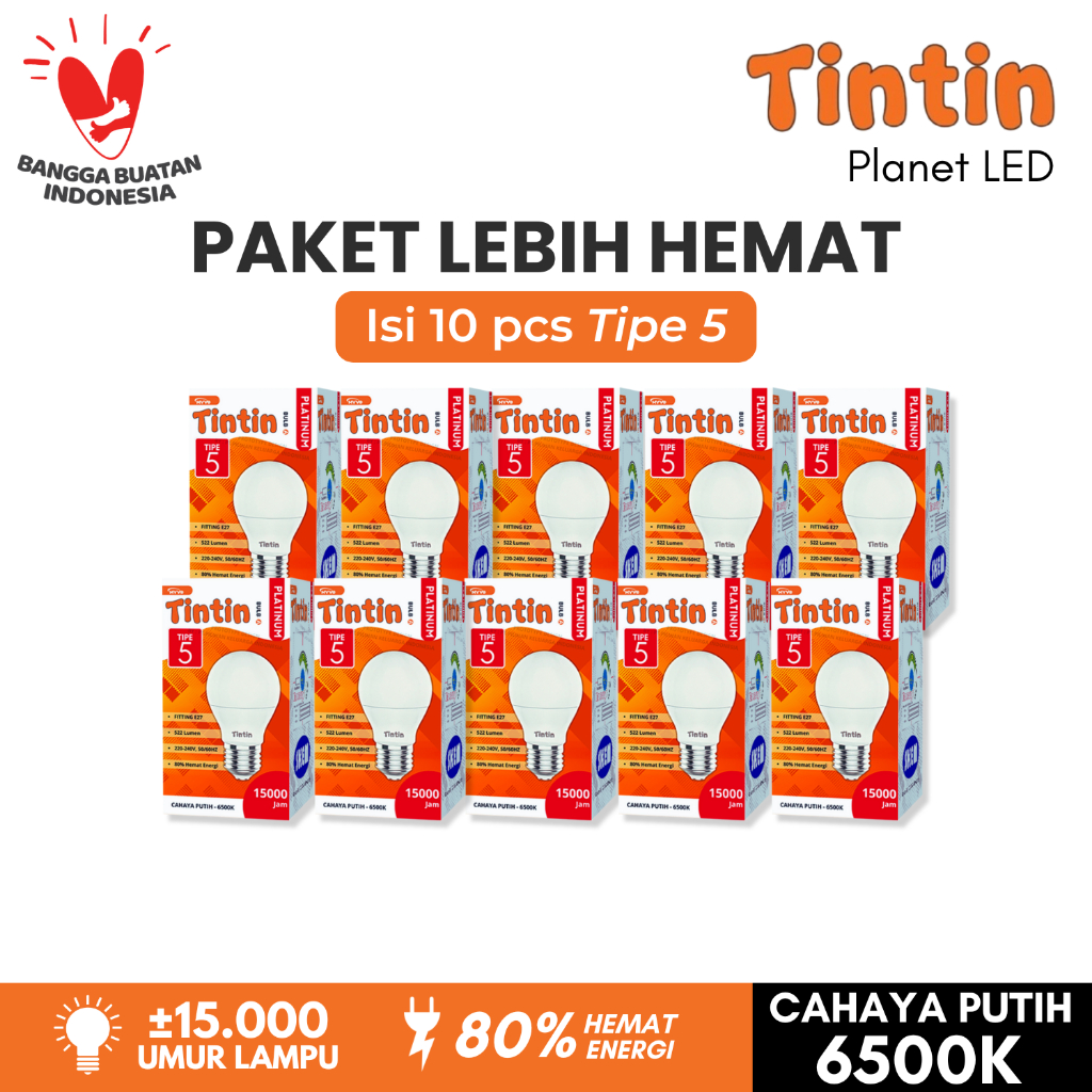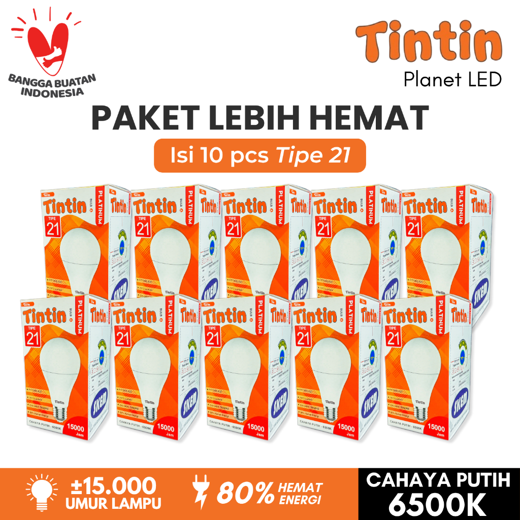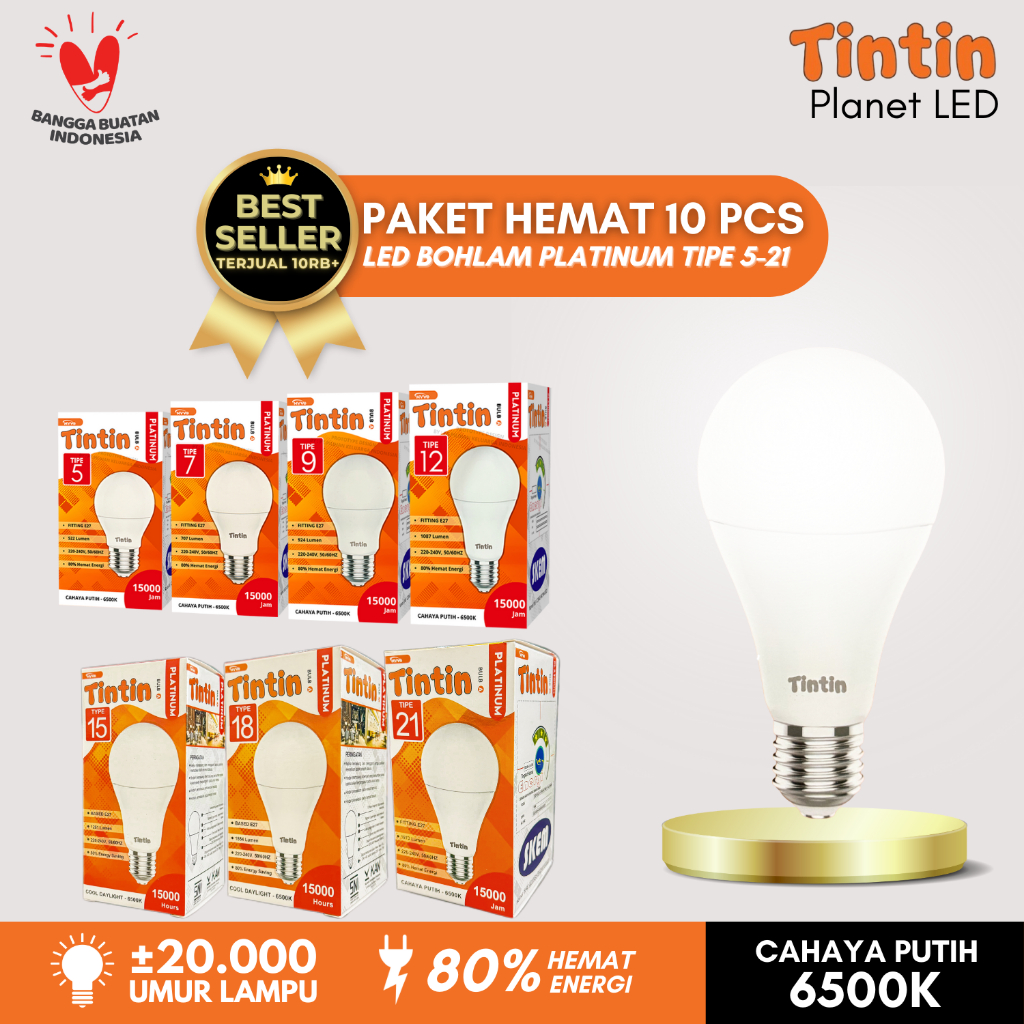 Paket Hemat 10 Pcs Lampu LED Bohlam Platinum Bulat Tipe 21/18/15/12/9/7/5 Tintin Putih Terang Tahan Lama Bundling