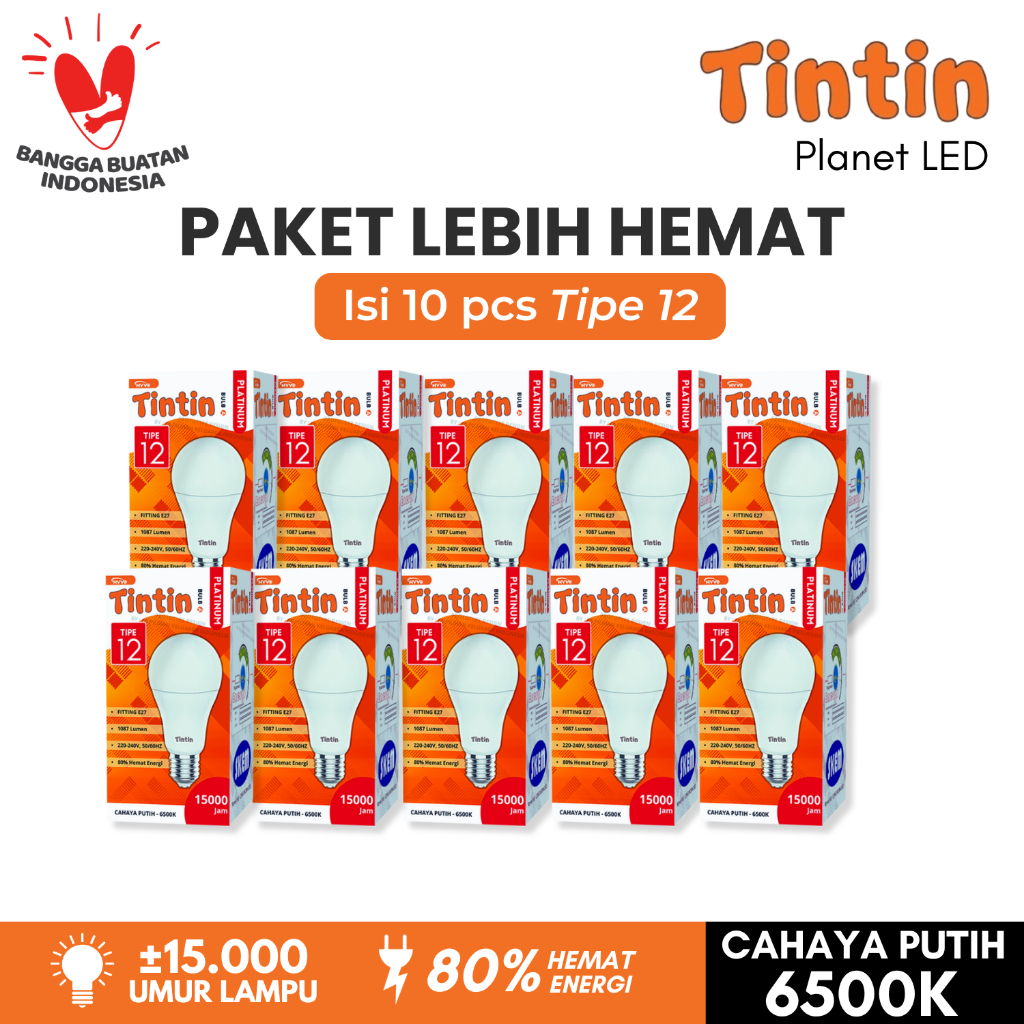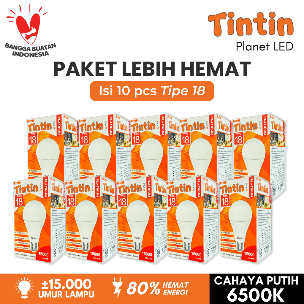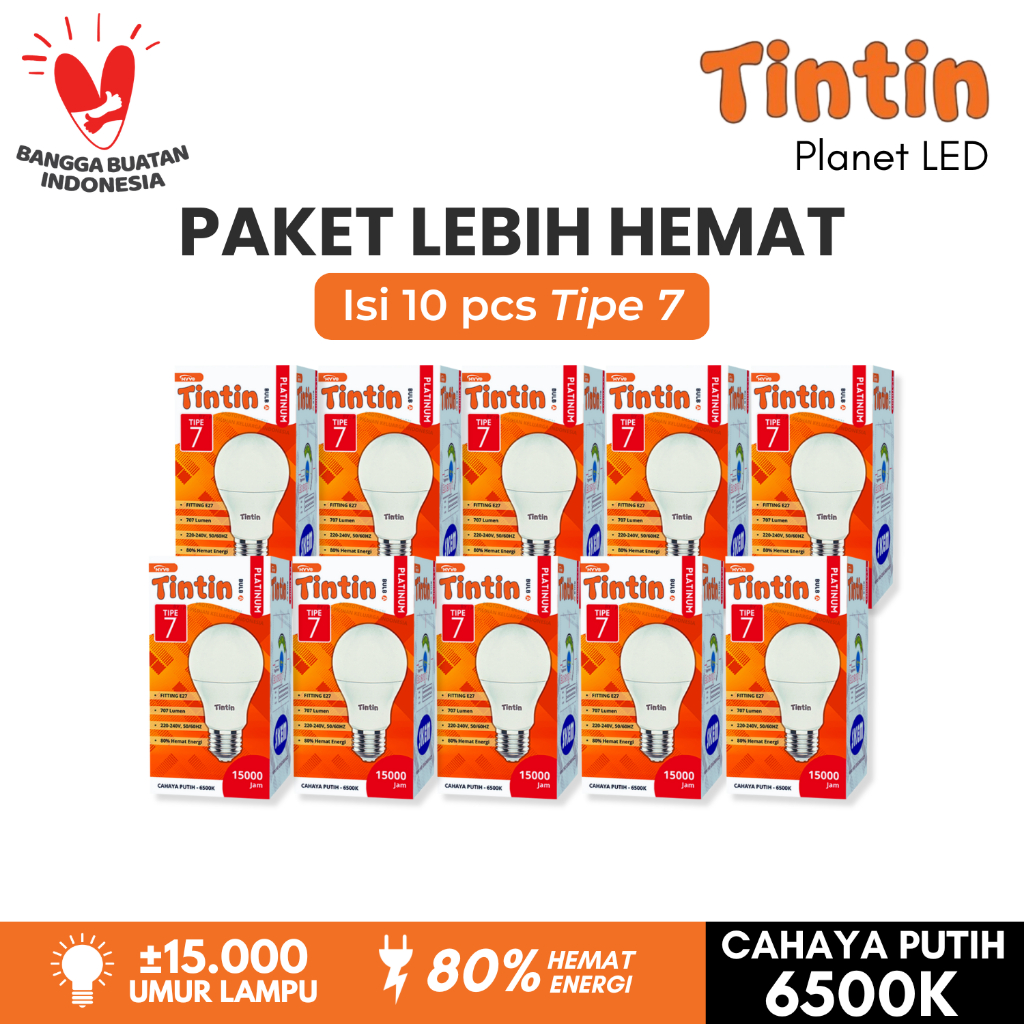 Paket Hemat 10 Pcs Lampu LED Bohlam Platinum Bulat Tipe 21/18/15/12/9/7/5 Tintin Putih Terang Tahan Lama Bundling