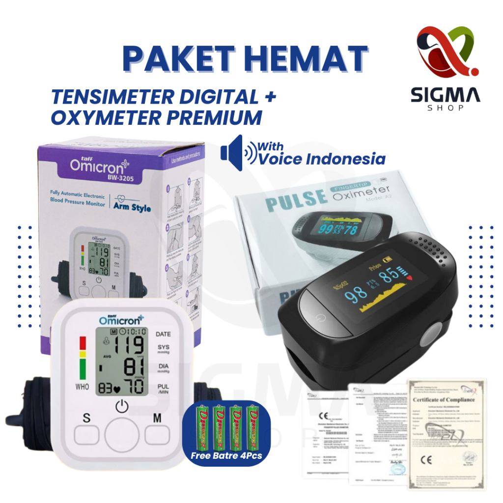 Paket Hemat Tensimeter Digital & Oxymeter Alat Tensi Fingertip Pulse Alat Ukur Kadar Oksigen Detak Jantung Alat Cek Tensi Darah Digital