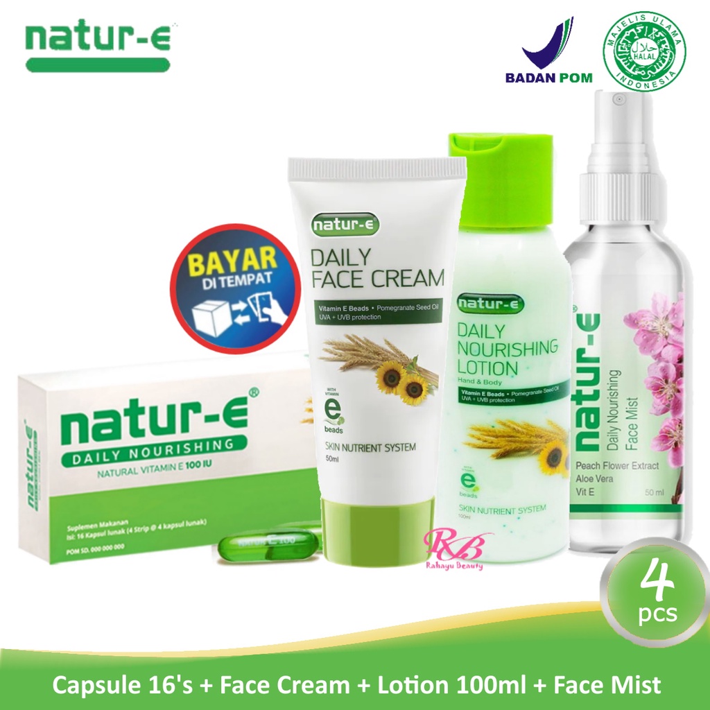 Paket Hijau Natur E Paket Ekonomis - 4 pcs ( Face Cream + Soft Capsule 16's + Body Lotion 100 ml + Face Mist )