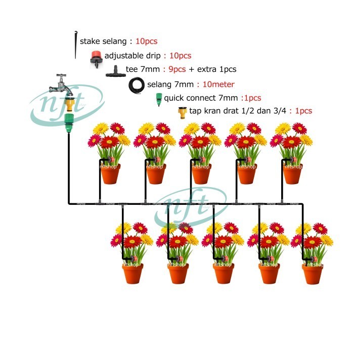 Paket Irigasi Penyiram Tanaman 10 Pot Tipe Kran Drat