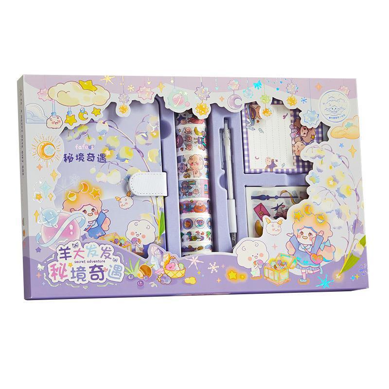 Paket Jurnal Set Diary / Journal kit / Paket set agenda/ Buku catatan set lucu pulpen stiker washi tape lucu imut pastel pink ungu handbook