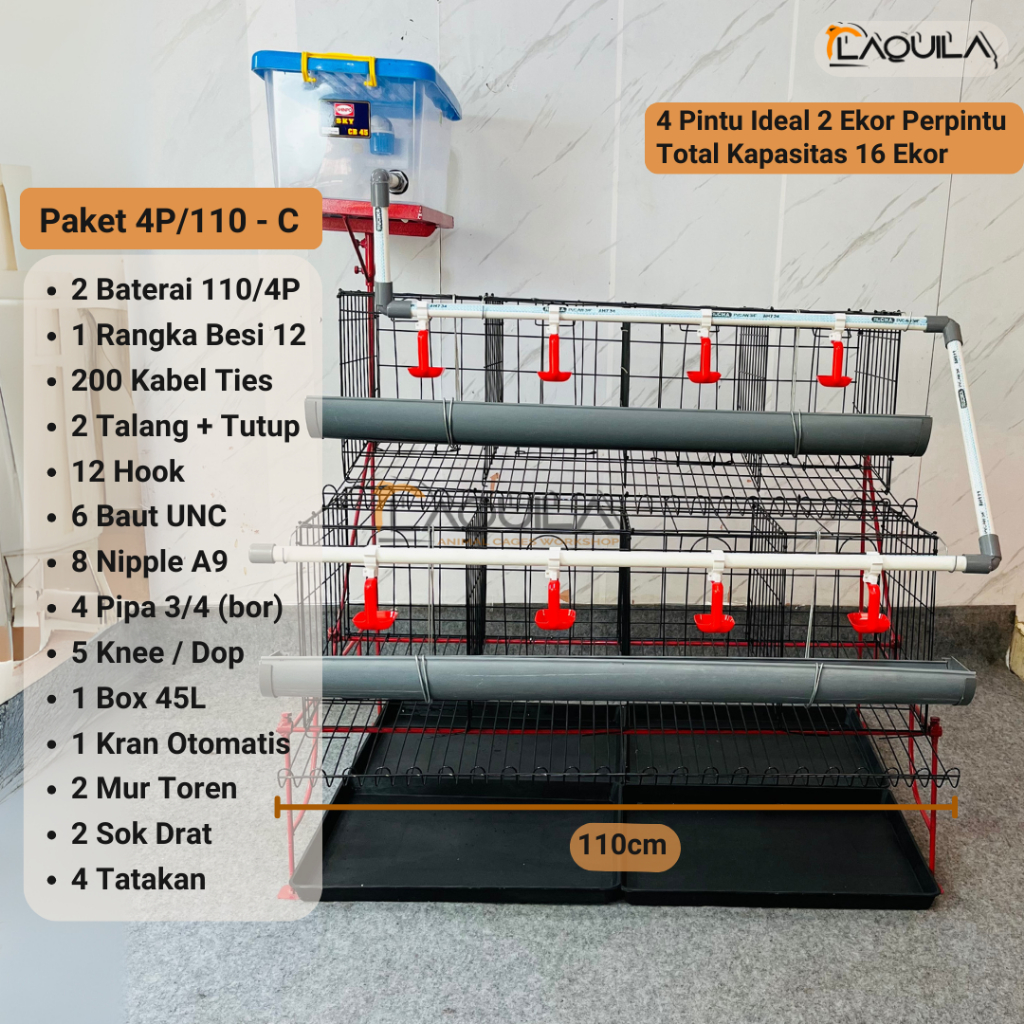 LAQUILA Paket Kandang Ayam Petelur 2 Tingkat Fullset Lengkap Rumahan Modern Praktis 12 - 16 ekor