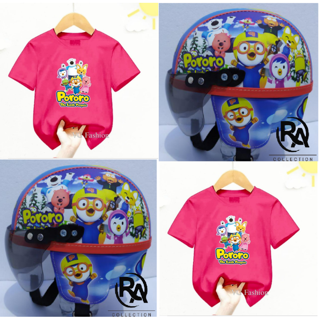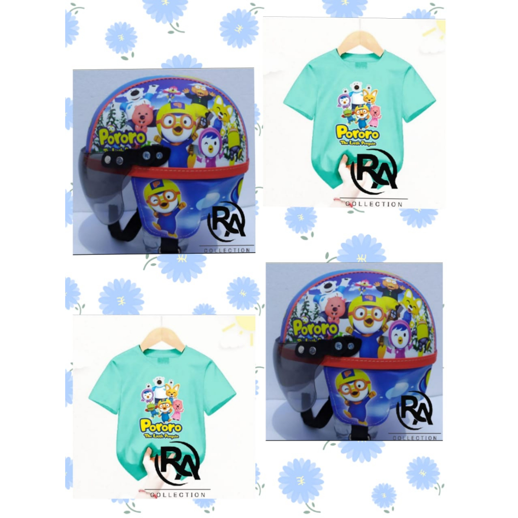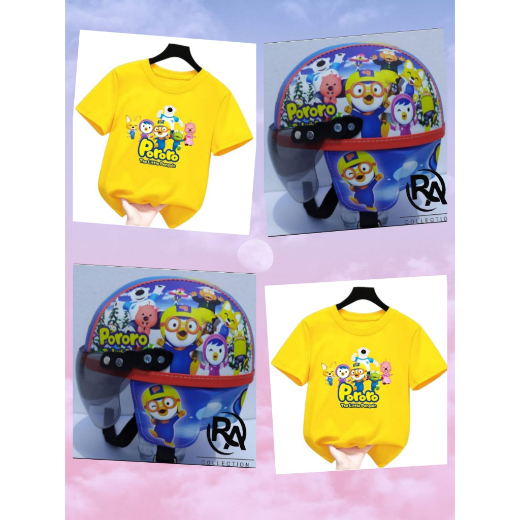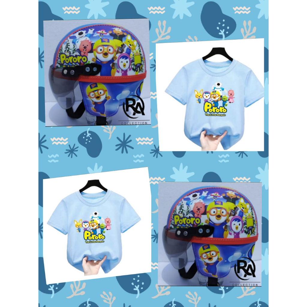 Paket Kaos Pororo & Helm Pororo Anak Bisa Untuk Usia Sampai 4 Tahun - Rafka Aulia Collection