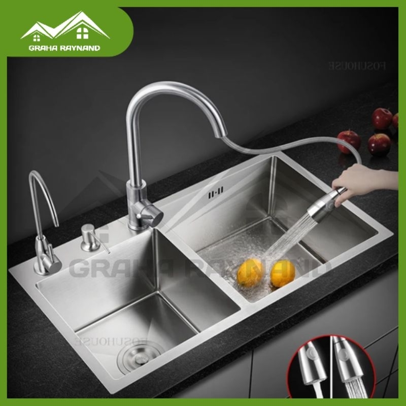 Paket Kitchen Sink 2 Lubang Silver Edition | Ukuran 82 cm x 45 cm