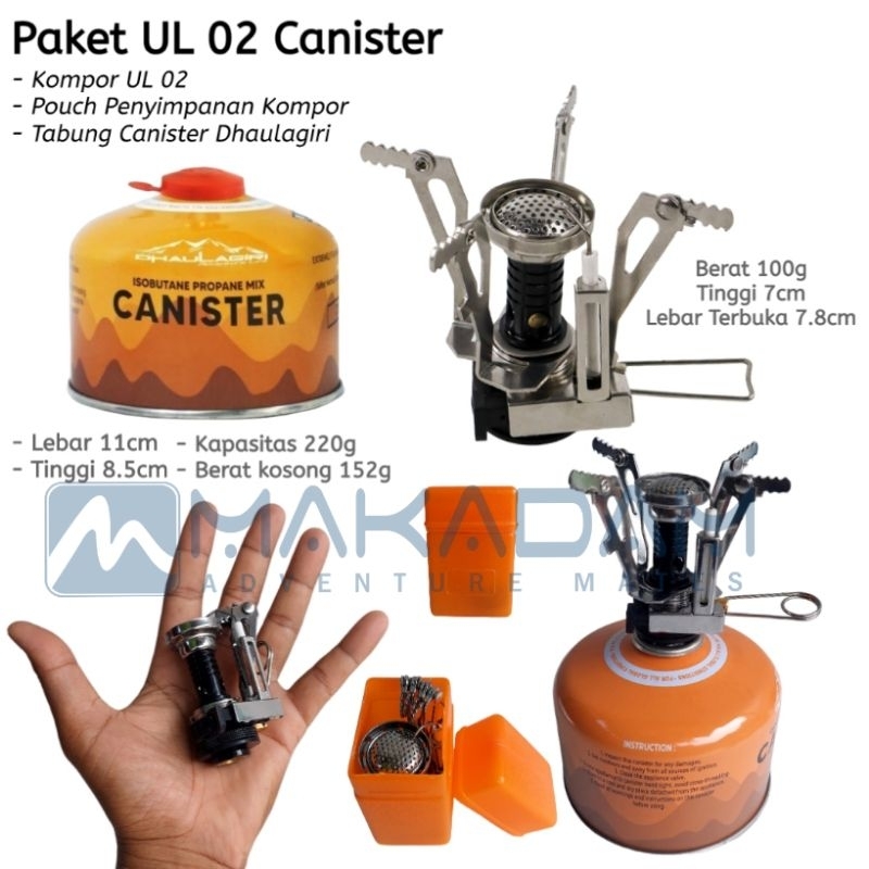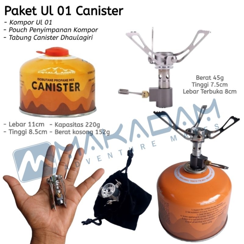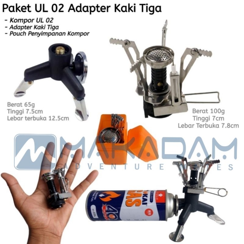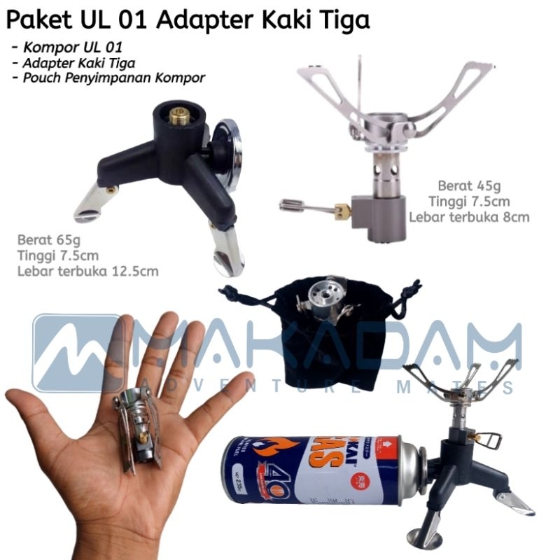 Paket Kompor Alat Masak Camping Hiking Ultralight Mini Tabung Ul Canister Adapter Kaki 3