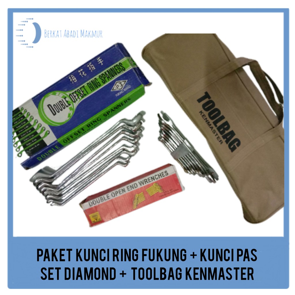 Paket Kunci Ring + Kunci Pas Set + Toolbag Kenmaster