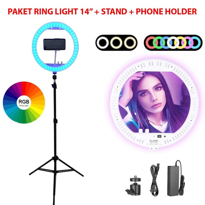 Paket LED Ring Light RGB 14inch - RL-13 for TikTok Youtuber Free Lightstand YT160