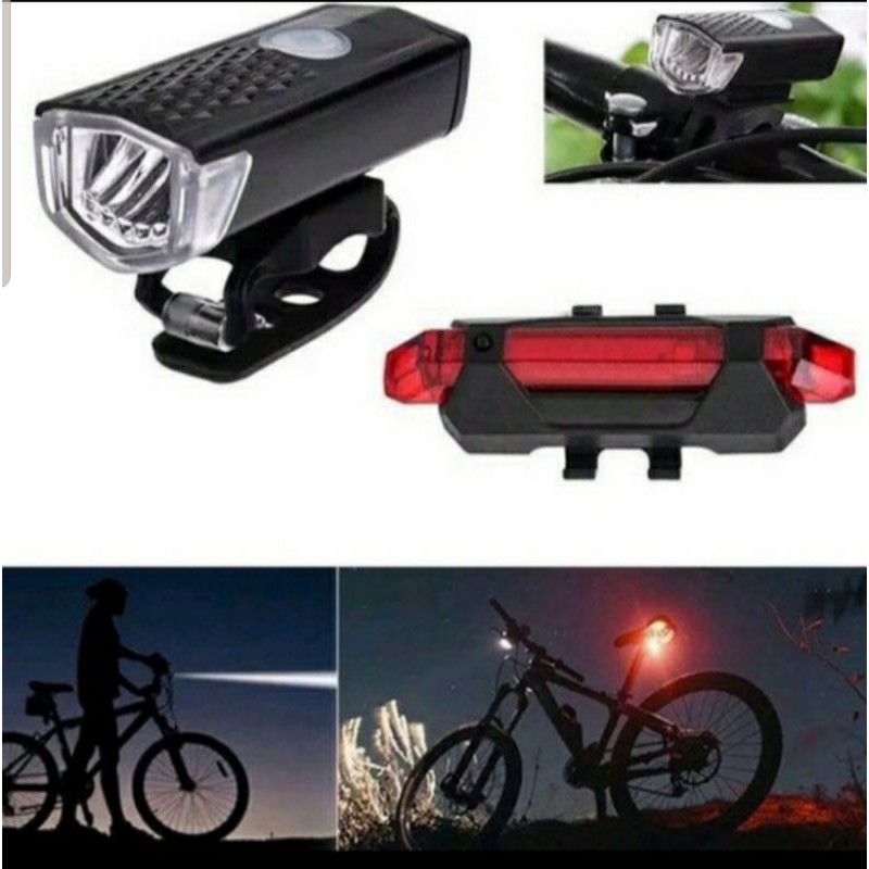 Paket Lampu Sepeda Depan Belakang Rechargeable/Lampu Sepeda Led