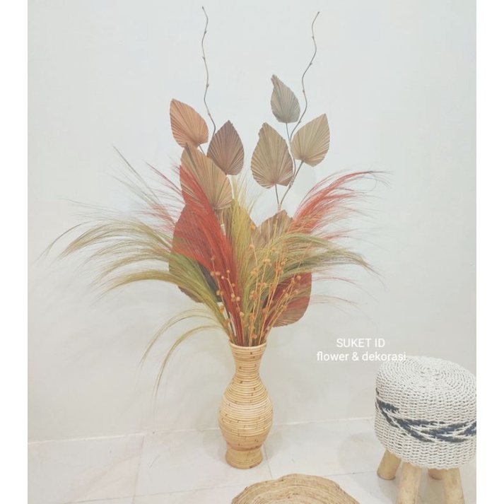 Paket Lengkap Bunga Rangkai + Vas Guci 50cm