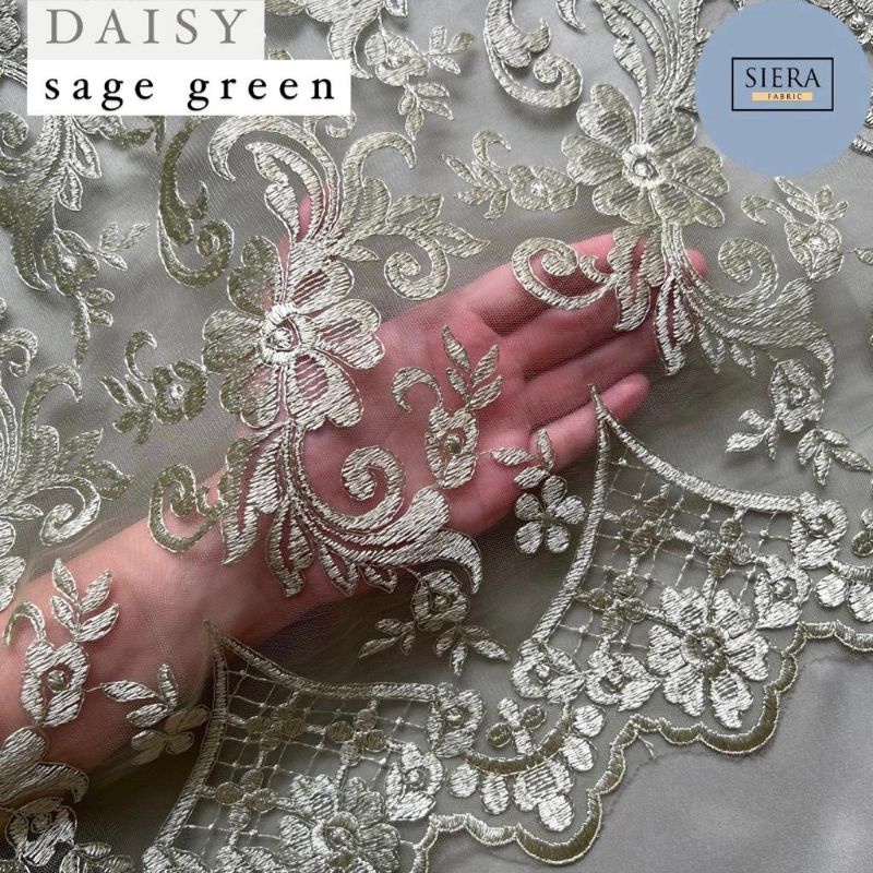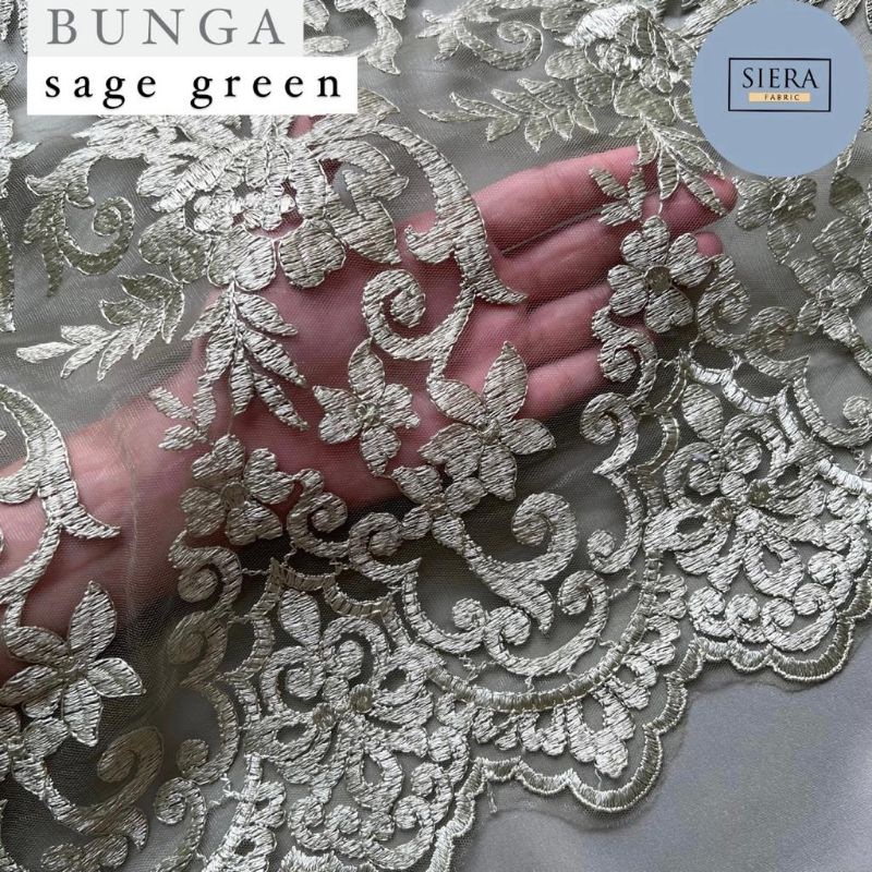 Paket Lengkap Kain Bridesmaid Premium / Kain Satin Velvet Premium + Kain Brukat Tile - Sage Green