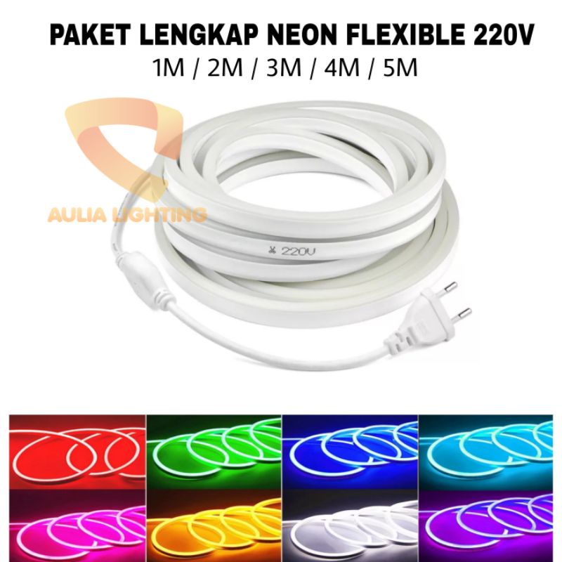 Paket Lengkap Lampu Neon Flex 220v Flexible 1 2 3 4 5 meter Waterproof Strip Outdoor Dekorasi kamar tidur cafe rumah Lentur Detak jantung tempel dinding hias kamar aesthetic