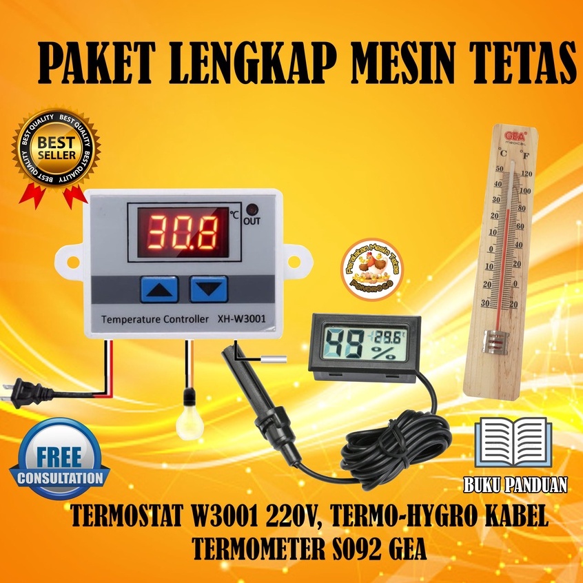 Paket Lengkap Mesin Tetas Termostat W3001 Termo-Hygrometer Kabel Termometer Peralatan Mesin Tetas