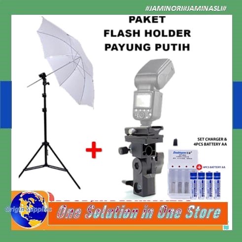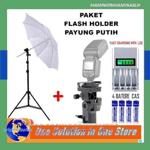 Paket Lightstand dengan Tas + Payung Putih + Flash Holder