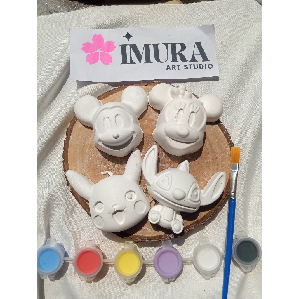 Paket Lukis Gypsum Mickey Mouse, Minnie Mouse, Pikachu, Stitch / Mainan Edukasi Anak / Edukasi Gypsum Series DIY Painting Kit Karakter / Paket Gypsum Karakter Edukasi anak