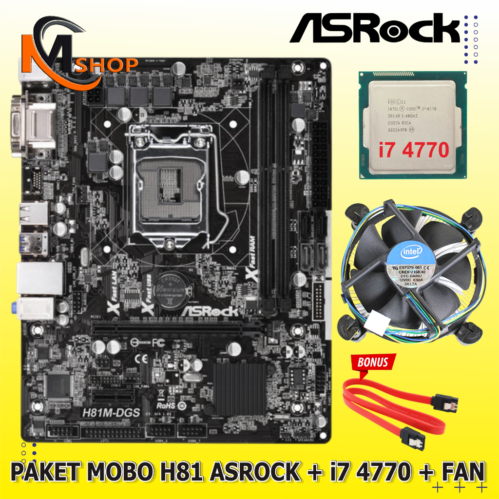 Paket Mainboard Mobo Motherboard Intel H81 Asrock LGA 1150 DDR3 + Processor Intel Core i7 4790 + Fan