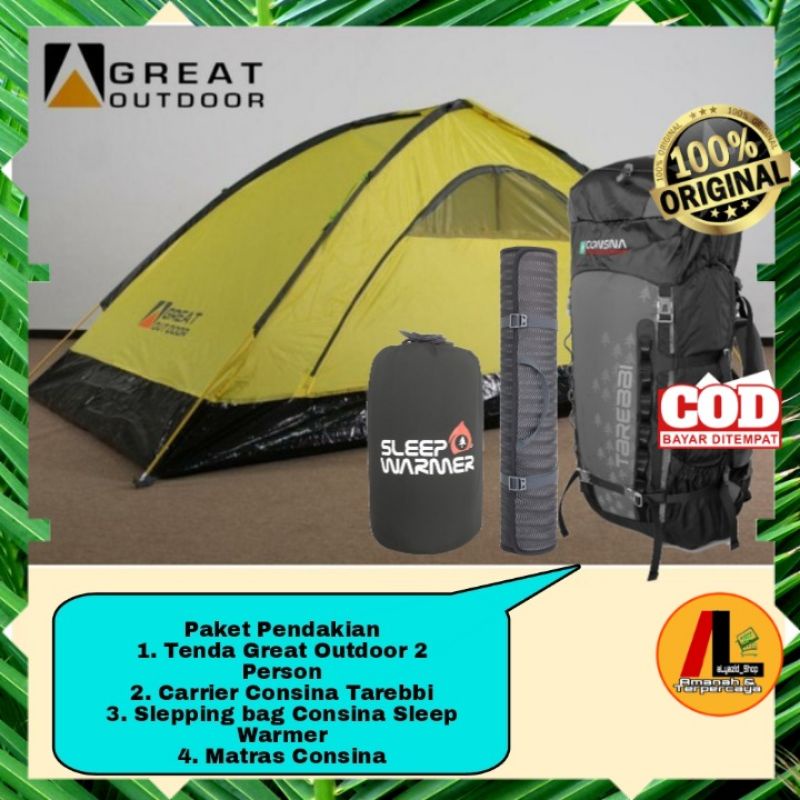 Paket Mendaki Peralatan Gunung Camping Lengkap Carrier Tarebbi Tenda 2 Orang dan 4 Person sleeping Bag Consina Great Outdoor Murah Berkualitas Original Ori