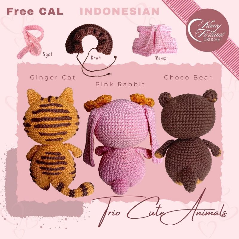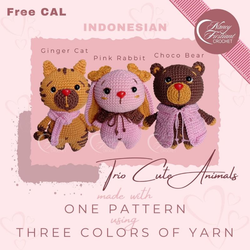Paket Merajut Boneka Amigurumi Set dan Free Pattern Trio Cute Animal by Nancy Firstiant