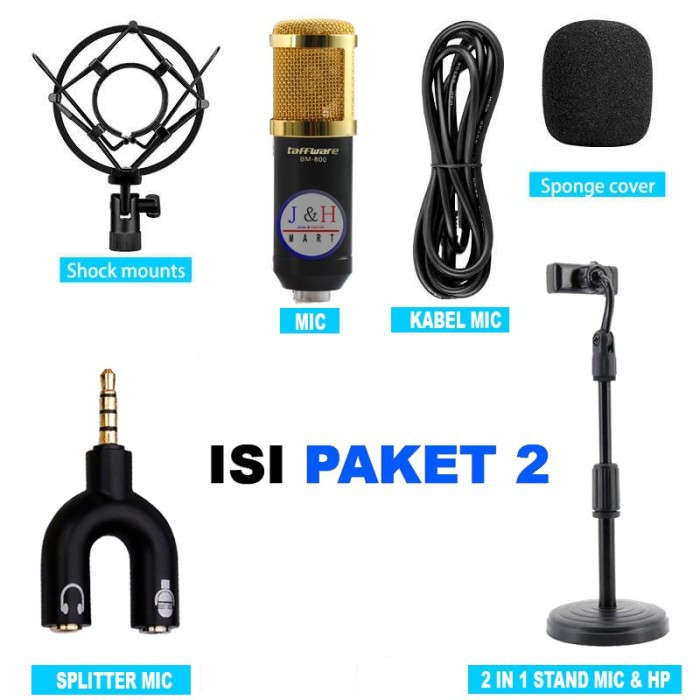 Paket Mic Condenser Taffware Microphone BM-800 HP Laptop PC Mic BM 800 - Emas, Paket 2 Murah