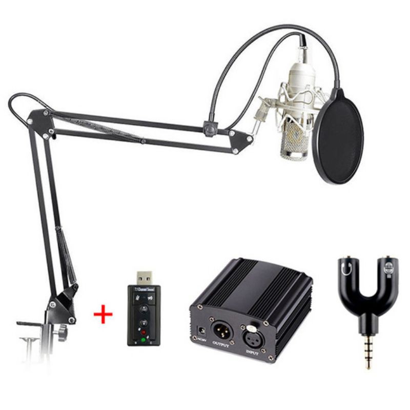Paket Mikrofon Kondensor BM-800 +Arm Stand +Phantom Power +Sound Card +Pop Filter +Splitter