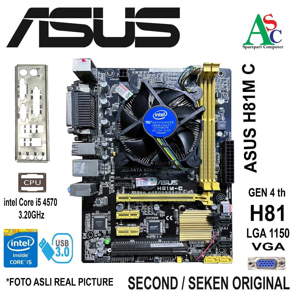 Paket Motherboard ASUS H81 Core i5 Gen 4 Fan Intel Backpanel