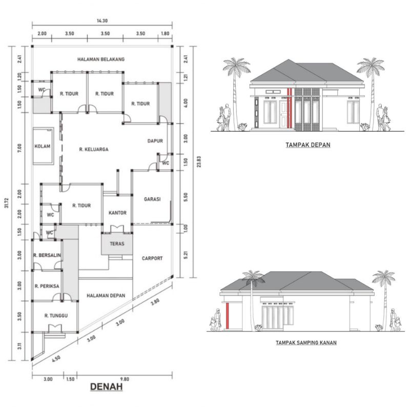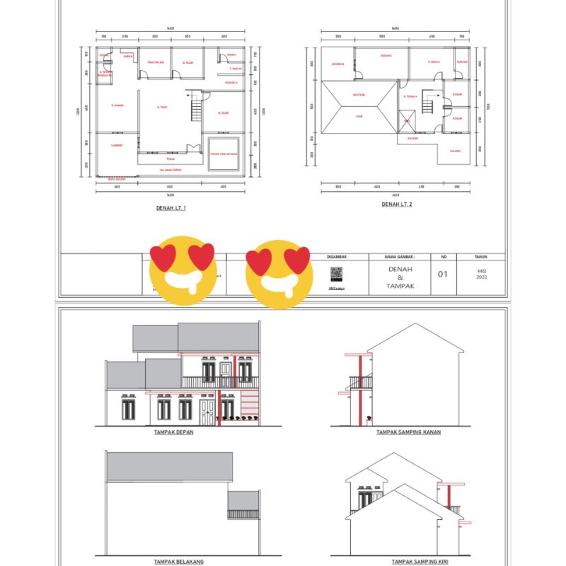 Paket Murah Jasa Denah Gambar dan Tampak 4 sisi 2D Arsitek Bangunan Rumah Tinggal Kantor Toko Ruko Gudang Aula Pabrik Kost Kost an Apotek Klinik dll