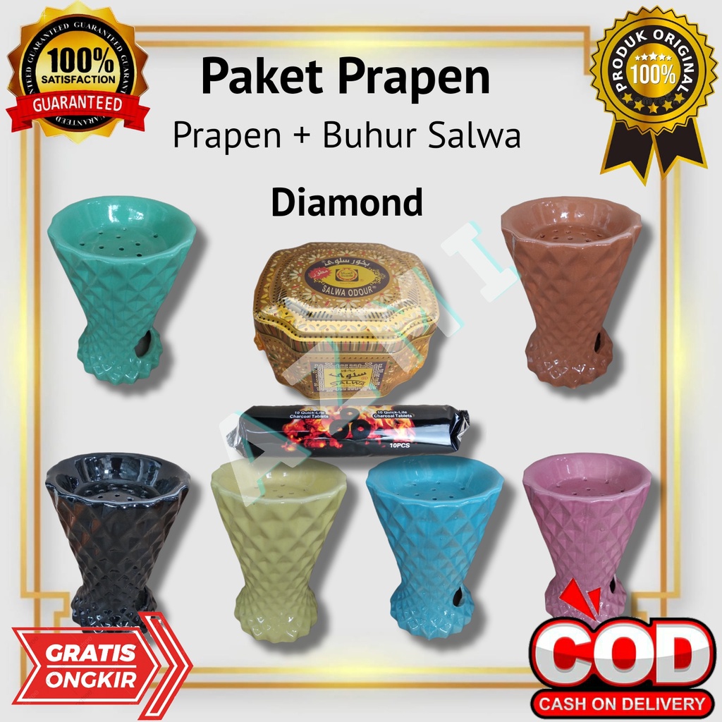 Paket Murah Prapen Keramik + Buhur Salwa Odour + Arang Briket | Bisa Pilih Motif Dan Warna