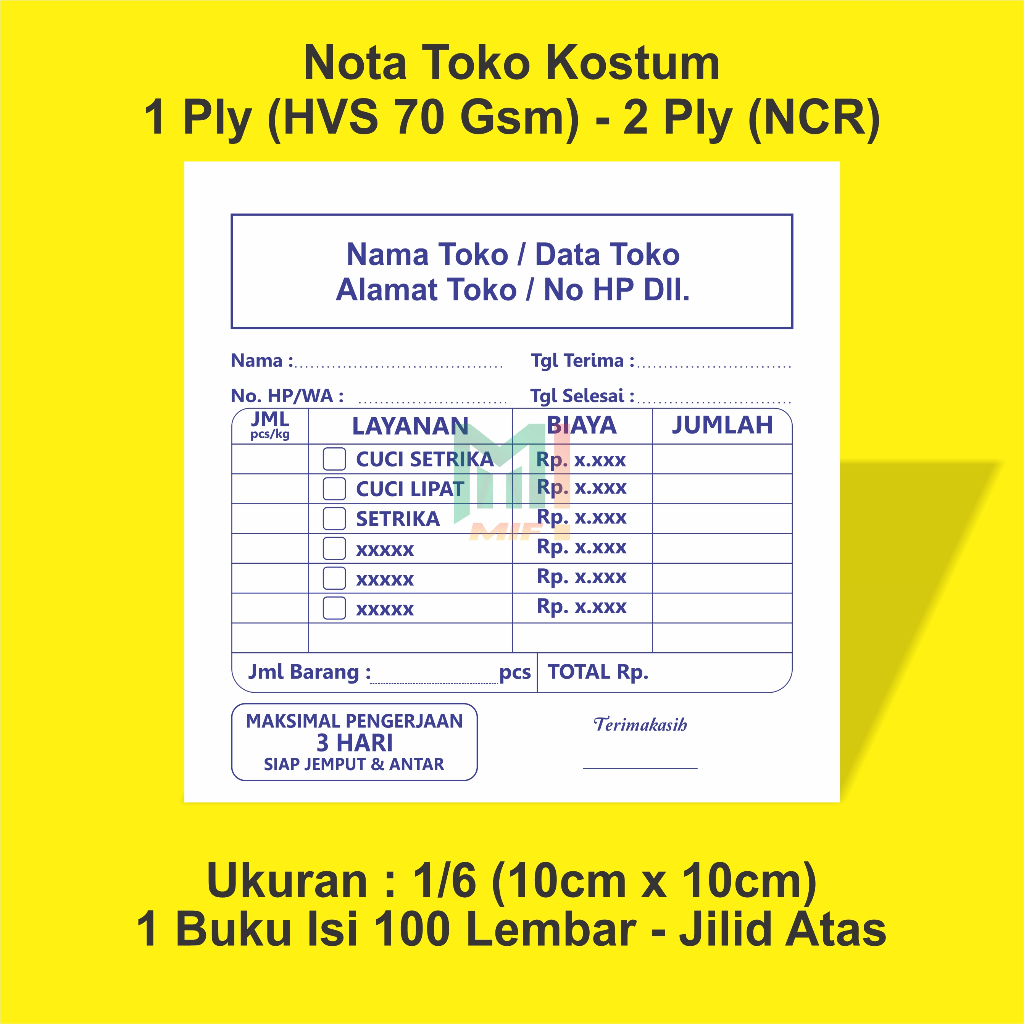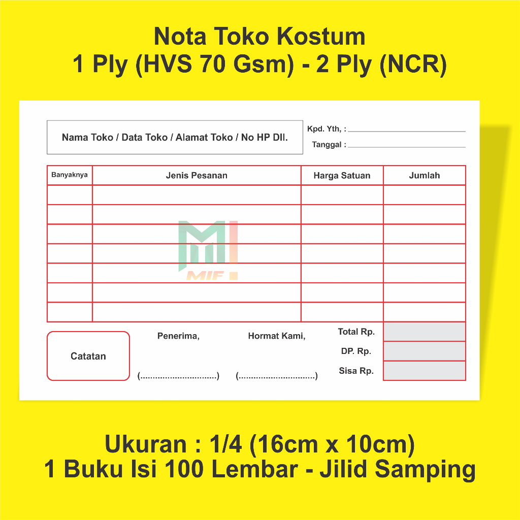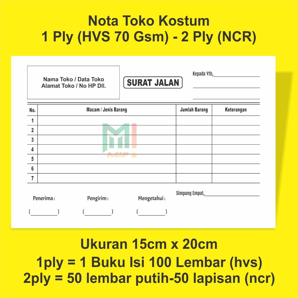 Paket Nota Costum Nota Penjualan Surat Kirim dll