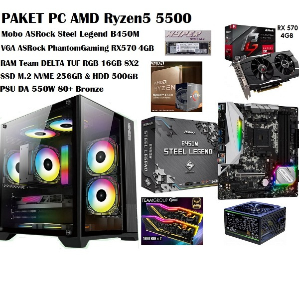 Paket PC AMD Ryzen5 MOBO B450M Phantom Gaming RAM 16GB VGA RX570 Phantom Gaming
