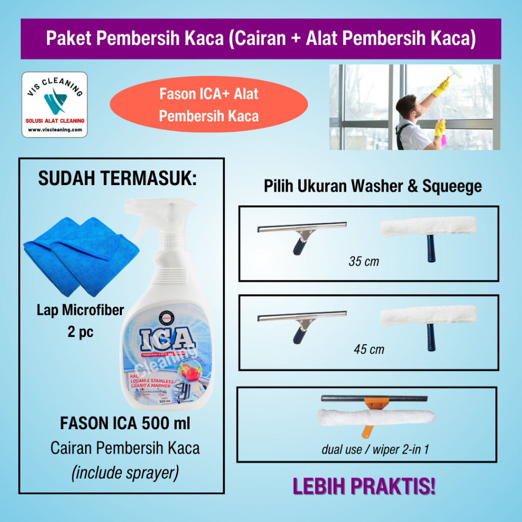 Paket Pembersih Kaca (Cairan + Alat Pembersih Kaca)